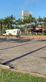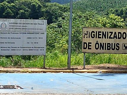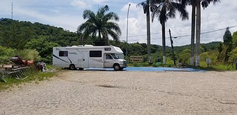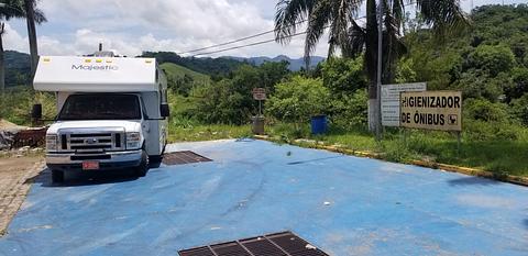 Estação de descarte para ônibus nos fundos, ao lado do mecânico. Funciona para trailers também.