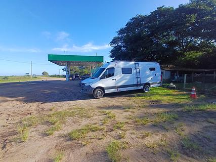 We arrived at the post at night, asked the attendant if we could spend the night and the answer was simple. "Yes, there's no problem, you look around, you can sleep quietly." And so it was the night. A very quiet night, comfortable, without noise. ..... Chegamos no posto já a noite, perguntamos ao frentista se podíamos passar a noite e a resposta foi simple. "Sim, não tem problema nenhum, te umas casa em volta, pode dormir tranquilo." E assim foi a noite. Uma noite muito tranquila, sem um barulho ou incômodo se quer.