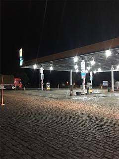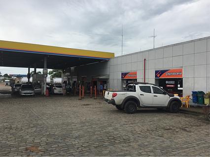 Estacionamento de caminhões em posto de gasolina. Ótima parada, com muitas boas opções para ficar, incluindo hotéis e estacionamentos para caminhões. Chuveiro 5 reais, se abastecer é grátis. Chuveiro quente disponível no banheiro feminino. Conversamos com o segurança e conseguimos eletricidade para carregar.
