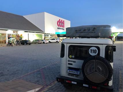 A brand new gas station with a huge parking lot for trucks but the security guy forbade us to stay there. We had to find a spot near the restaurant. OK, a nice place to stay the night, but refueling is in the next station. ..... Um posto bem novinho com um estacionamento enorme. O segurança não deixou parar nos fundos. Tive que parar perto do restaurante. OK o lugar é bom, mas reabastecer só no próximo posto.