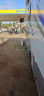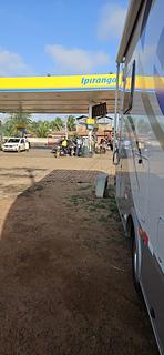 Depois da polícia nos abordar e dizer que era perigoso dormir em Tourinhos, viemos para a cidade e encontramos este posto. Não é 24 horas mas os atendentes nos receberam bem e disseram que era tranquilo passar a noite. Tem uma torneira perto do muro.