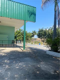 Chuveiro e ampla área de estacionamento. Parte dos fundos protegida de ruído da estrada
