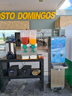 Posto de combustível com lanchonete 24h e banheiros, chuveiros, água, suco e café de graça. Amplo estacionamento iluminado e com calçamento. Silencioso e com descarte de águas negras.