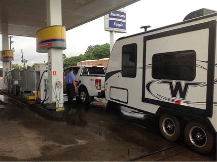 Service station with parking area for trucks and motor homes.24 hrs. Offers water, 220V power, bathrooms with hot showers. Free, but by reciprocity we must always fill up here. About 3 km from the city center. Quiet spot at night with porthole. ..... Estação de serviços com área para estacionar caminhões e motor homes. Oferece água, energia 220V, banheiros com ducha quente. Grátis, mas por reciprocidade devemos sempre abastecer. Uns 3 km do centro da cidade. Local tranquilo à noite com vigia , posto 24 horas