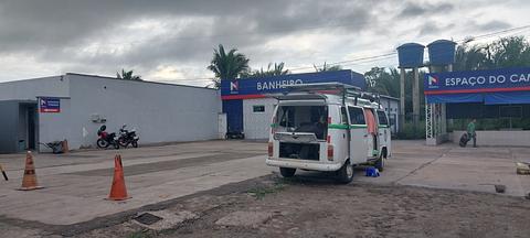 lugar com muitos caminhões, chuveiro grátis, mas banheiro masculino muito sujo, banheiro feminino mais ou menos.... 24 horas café água potável
