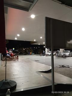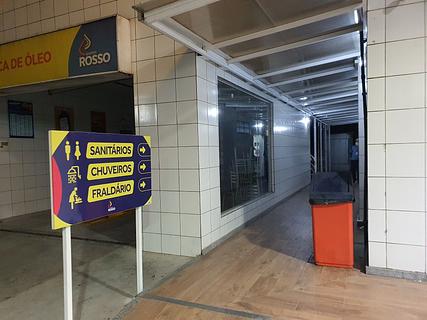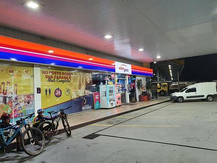 Gas station with hot shower, safe place to sleep in the car; free hot and cold water; good and cheap food. Works 24/7.