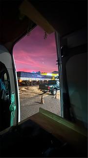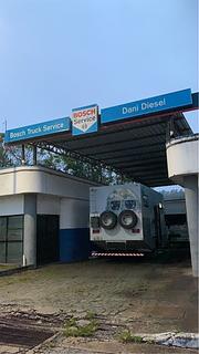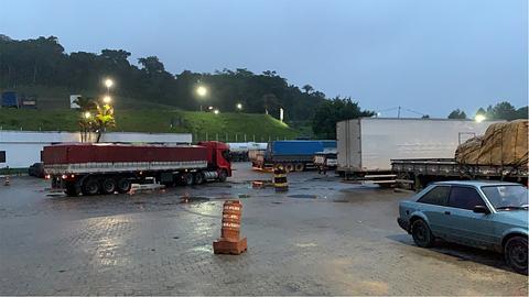 Posto de gasolina com estacionamento para caminhões onde é possível passar a noite. Muito movimento e barulho de caminhões.