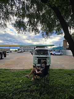 posto de combustivel, com espaço para estacionar, banheiros com chuveiro quente, paga somente banho masculino. tem hotel ao lado e lanchonete. tem tomadas disponiveis, lava jato... o posto funciona 24hrs