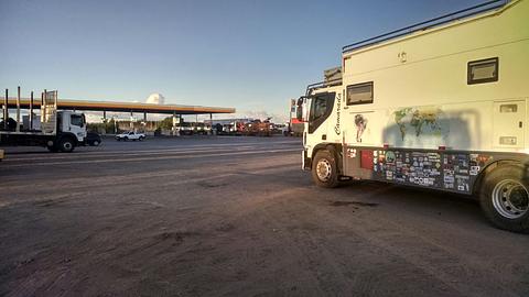 Ample parking for trucks, bathroom, hot shower R $ 4.00 and cold R $ 3.00, restaurant, water.
