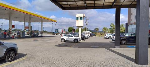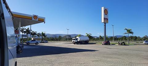 Posto de gasolina. Dormimos uma noite aqui. Segurança 24 horas.