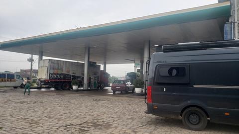 Gas station side of the highway. Place safe to overnight but no offer many amenities. Due the highway the place is noisy to sleep!