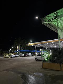 Posto de gasolina, tem banheiro, conveniência, hotel, hamburgueria e outras coisas. Fica no centro de Santa Quitéria, da pra ficar tranquilo. Tem um banheiro que permitem usar a tomada dele para que você conecte seu moto home, só conversar!