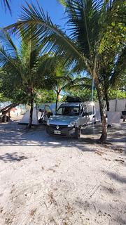 Acampamento novo, não muito grande e também com quartos de pousada. Tem cozinha equipada, casas de banho com duche quente e frio, instalação de água e luz. aceita cachorros. Tem espaço para barracas e carros, não tenho certeza sobre motorhomes grandes porque as árvores são um pouco novas e baixas. $ R40/p por noite.
