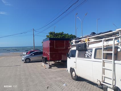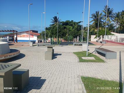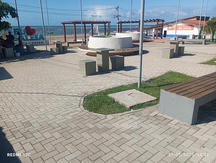 Aqui você tem água, eletricidade, um cano de água da mina para banho, fiquei aqui por uma noite em paz, comprar peixe dos pescadores é barato, a praia forma uma barreira na maré baixa quebrando as ondas, há uma academia pública, um canil para cães, um parquinho para crianças.