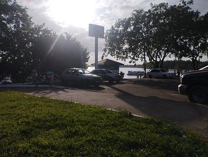 Pernoitamos aqui quando chegamos, ao lado do posto, não é estacionamento do posto é uma praça. Local bem movimentado, chegada das embarcações. A noite as barracas abrem tem vários tipos de comidas. O posto é 24h e nos ofereceu água .