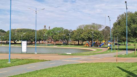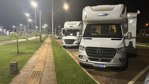 A large park, popular with athletes. Excellent 4G signal, electricity, and water are available. There are municipal guards from the station nearby. The area is well-lit, with walking paths, an outdoor gym, and a sand tennis court nearby. We felt safe. There were other RVs. Free parking.Próxima ao centro, local plano, asfalto, aceita todos os tamanhos, sinal internet boa, posto de polícia 24h, Unidade de Saúde, parquinho, local de caminha, luz e agua.