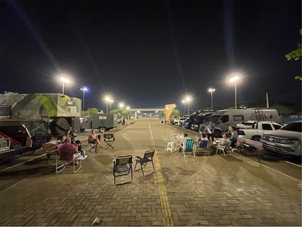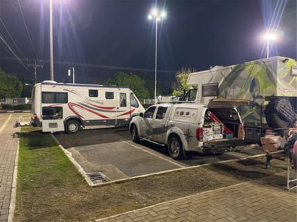 City parking lot, but secure (army next door), there is a water tap and electricity point. Traffic during the day but slows down at night. Breezy place. Place recommended to us by the Motorhome club of Boa Vista (they hold meetings here sometimes