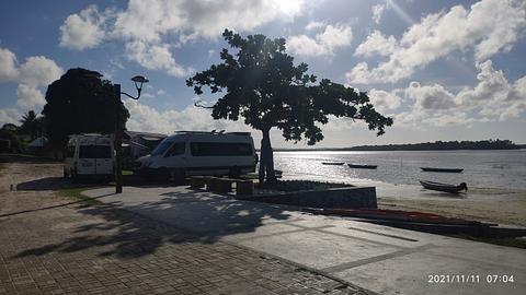 espaço Público para estacionar e pernoitar no atracadouro da cidade de Muta, pessoal muito receptivo. praia tranquila e água morna e sem ondas. tem umas barraquinhas por perto.