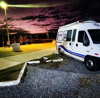 Amplo estacionamento público aberto 24h ao lado da praia artificial. Tem torneiras com boa água, dois banheiros ficam trancados, mas ao lado da Secretaria de esporte e lazer tem banheiro e ducha que ficam abertos 24h. Ponto seguro e silencioso. Aprovado. Inscreva-se no canal do YouTube Gestão na Estrada.