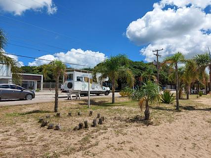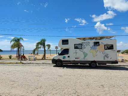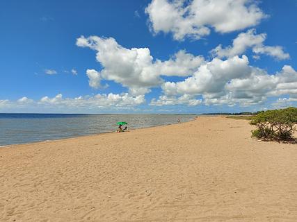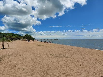 Local na beira da praia na Lagoa dos Patos. Limpa e calma. Próximo de onde estacionamos tem um quiosque que vende lanches, chuveiro para quem sai da praia e um outro quiosque com tomadas USB para carregar equipamento, as tomadas funcionam por energia solar. No verão a prefeitura coloca banheiros na Praia.