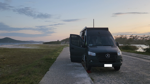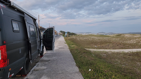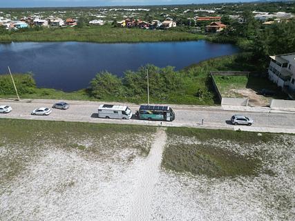 Rua calma entre o último lago e a praia do foguete, quase na frente da pousada Albatroz. Local muito seguro segundo a polícia local do portico de Arraial. Policiais fazem a segurança desta área da pousada e informaram que ali não há risco de assaltos ou furtos. Evite ficar na parte norte da praia pois há grupos de traficantes dominando as comunidades naquela área. — Lugar muito tranquilo, sem serviços. A praia e a cor da água são lindas! Do outro lado há uma lagoa com muitas aves. É importante que lembrem de cuidar do ambiente, seja onde forem, já que nos comentaram de algumas pousadas que às vezes não deixam ficar motorhomes por deixar lixo, jogar águas cinzas na rua, acender fogo em espaços verdes, etc. Cuidemos!