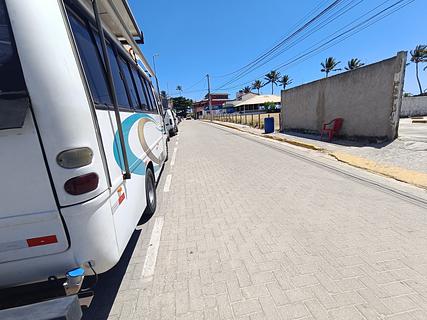 Na Rua das algas, sinal de internet celular vivo muito bom, tamanho sem restrição para veículos médios, ducha e banheiros, próx a praia, pernoitamos duas noites, banheiro até às 17:00h,