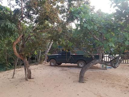 Camping da Praia do Puça. É uma praia de rio. 24 km de estrada de areia e terra, mas em boas condições. O uso diário custa 70 por pessoa, mas você pode acampar. Pagamos 100 por pessoa com nosso trailer, mas pode ser mais caro nos fins de semana e para barracas. Tem água, eletricidade, banheiros, chuveiros quentes e uma boa área de camping. Veículos grandes podem ter dificuldade na estrada e não conseguem entrar no espaço principal, mas podem ficar perto dele.