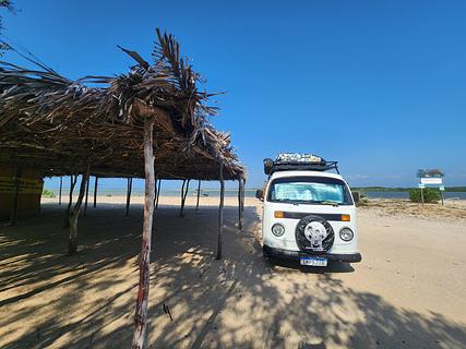 We camped on the riverside beach in a fishing community. Apparently, there's no power, and we don't know if there's water.A quiet place, with only local fishermen during the week, and a spectacular sunrise.Tim and 4G signal.We spent one night and felt completely safe.Perfect for those who enjoy wild camping. --- Acampamos na praia na beira do rio, em uma comunidade de pescadores, aparentemente não tem energia no local e não sabemos se tem água. Local tranquilo, durante a semana apenas movimento por pescadores locais e um nascer do sol espetacular. Tim e claro com sinal 4g. Passamos uma noite nos sentimos super seguros. Perfeito pra quem gosta de um wildcampin.