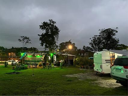 O dono do quiosque aceita trailer e Motorhome no gramado Cedendo água e energia Tem banheiro e chuveiro com água fria