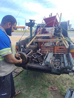 He has a workshop in his van and offers fair prices and quality service. He works on heavy and light mechanics and also makes house calls. --- Ele tem uma oficina na camionete dele e o preço justo e serviço de qualidade meche com mecânica pesada e leve também vai até o local