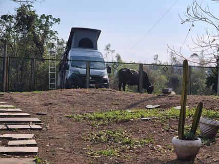 A new guesthouse with 4 bedrooms that proposes RV to stay and use the facilities. And what facilities!!! Two swimming pools and high standard showers! The camp place is right in front of the guesthouse and is very flat. The access road is a rough terrain but no need for a 4x4 as it is flat. Big rigs could access. Price is 100 real per person and negotiation possible for kids. The owner proposed us a great experience of rafting as the guesthouse has rafts as well.