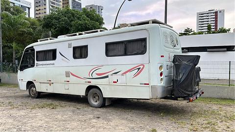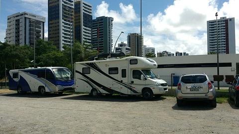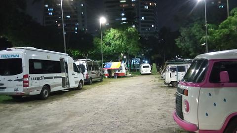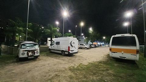 Parking lot next to small city park. Much police, guards and camera's around, so we felt absolutely safe. We even got electricity. Toilet available between 6:00 and 22:30.