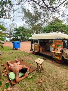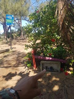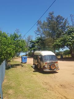 At the end of the road there is access to the beach.Nice place to stay one or two days.There is a public cold shower. Walking north you will find the river, a beautiful view. No final da rua há um acesso à praia. Bom lugar para ficar um ou dois dias. Tem um chuveiro de água fria. Indo para o norte, você encontra o rio, que é bem bonito.