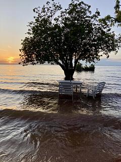 Almoçamos na beira do rio tapajos e depois dormimos ao lado do restaurante. Não conseguimos falar com o proprietário então não pedimos luz.Muito tranquilo e seguro