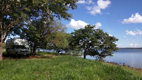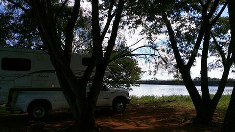 Local fresco e sombreado bem na beira da água, 200m ao norte da nova ramp de barcos. Vários locais disponíveis e o lugar marcado fica ao lado da bomba de abastecimento de água da cidade, que fornecerá ruído de fundo contra os galos e cães da cidade à distância. Água limpa e clara disponível do lago. Moradores estavam nadando nas proximidades. Nota - obviamente, os moradores têm usado carvão para cozinhar, mas não há evidências de fogueiras acesas. Grandes áreas adequadas para barracas. Provavelmente agitado nos finais de semana.