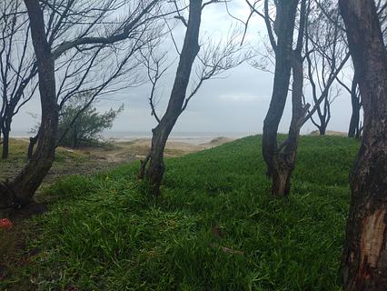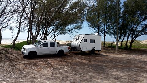 We stayed on the side of the road in a wooded spot with lots of leftovers next to some dunes 20 meters from the beach. Quiet and peaceful location with easy access to the beach and a public shower on the corner. We slept a peaceful night. On the other side of the street is a vacation rental house.Ficamos na beira da estrada em um ponto arborizado com muita sobra próximo a umas dunas a 20 metros da praia. Local calmo e tranquilo com acesso fácil para a praia e um chuveiro publico na esquina. Dormimos uma noite tranquila. No outro lado da rua tem um sobrado de aluguel de temporada.