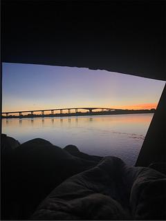 Um lugar muito especial à beira do rio, de frente para o nascer do sol e a ponte da cidade. Calmo, pacífico. Apenas alguns pescadores de barco pela manhã. Sem instalações.