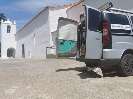 Parking right next to the church. No traffic and even ground. Water and bathrooms behind the church. Open WI fi connection in the Cafe