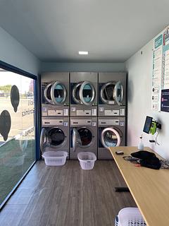 Laundry on the edge of the Stok Center shopping center. 3 washers, 3 dryers. A waiting area, a table for folding laundry. Everything is very clean. Credit cards only.