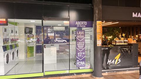 3 washers and 3 dryers - no attendant - pay by credit or debit card to start the machines - open 24 hours - cafe next door and an Asian restaurant - parking - right beside the Shell gas station. 17.50 reals per wash. 30-40 mins depending on load type.