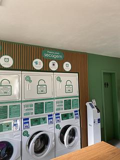 Lavandaria. There are four washing machine and four dryer. Easy to pay by card. You don't need washing liquid, is all included. 20$ Real per washing. You can park in front of the building.