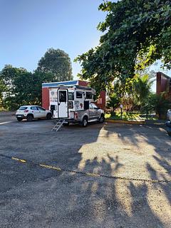 huge petrolstation, a bit rundown but great to spend the night. Best place is by the restaurant at the end, where the old, not longer in use, Borracharia is.