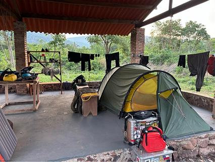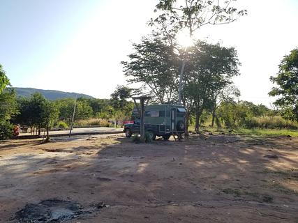 Camping near the Canion and Waterfalls, has water, 110v electricity, clean bathroms and Wi-Fi. The person who lives here (Edelvina) is also a guide that can help with the trails in Vila Bela. We payed R$40 per person, and they are improving the camping.