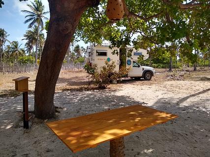 Camping 150 meters from the dunes, 10 minutes walk from the river and 3 minutes from the sea by car. Large spaces shaded in a natural setting. Speak French, Portuguese and English.
