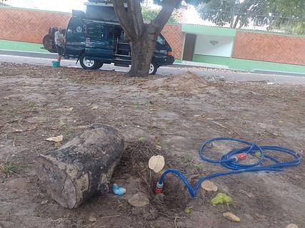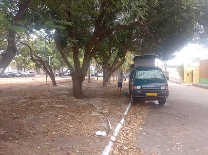 We camped here on the street for 4 nights. Quiet and safe with very friendly locals. It's a little park, that's neglected but with plenty of shade. There's also a water tap but it's quite well hidden under a small log. We are not sure if it's potable though. There are other small parks with a regular tap. Any type of vehicle can fit here. No facilities except for trash cans. Good cellphone reception with Tim.