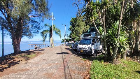 A very quiet small parking bay between the street and the Beach, free. beautiful sunset viewpoint, very quiet waters with no waves almost like a swimming pool. no facilities. passed a very quiet night here. not for big rigs or long vans. it is an average 45° parking bay for normal cars.