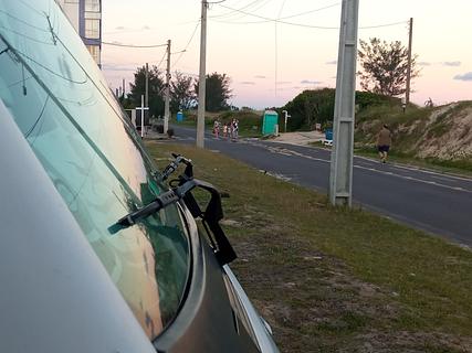 Terreno baldio usado como estacionamento informal, bem nivelado, bem seguro, tem chuveiro na esquina e cobertura de de todas operadoras de celular, banheiro químico perto também tem. Passamos 3 noites, perto do centro e de frente pro mar.