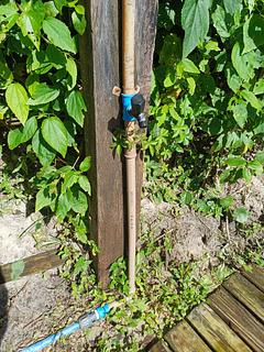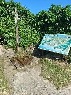 Next to the sign, there is a cold shower and an easily accessible tap.