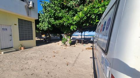 Few vacancies, where we could park next to a structure with bathrooms, we talked to the locals and it was quiet, weekday, movement only of young people playing futvolei in front.We were advised not to use the water that was in the bathroom tap. Locals also said they could use an energy point they had in some places there.-----Poucas vagas, onde pudemos estacionar ao lado de uma estrutura com banheiros, falamos com os locais e foi tranquilo, dia de semana, movimento apenas dos jovens jogando futvolei em frente.Nos recomendaram não usar da água que tinha na torneira do banheiro. Locais ainda disseram que poderia usar um ponto de energia que tinha em alguns locais por lá.