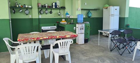 A structured camping with collective kitchen, clean baths and hot shower. Only tents and small motorhomes. It's 200M of the beach. R$30,00pp + electricity. There are rooms available on site. Our dog was allowed. But I would send the a message first and ask if it's alright to bring the dog.
